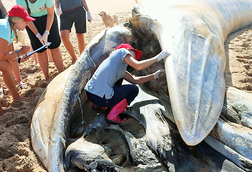 - beach surveys which include tracking shark egg cases and cataloguing marine megafauna, dolphin and whale watching from boats, data counts, river surveys, snorkel trips, data entry, animal surveys from peninsula to track sharks, seabirds, and marine mammals, beach clean ups, responding to marine mammal strandings or mortality events, and community outreach
