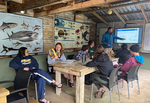 Transfer to the project from the local airport, meals at the project, housing, local experts talking with the groups, all of the research, educational, and cultural activities. Five dives a week are included, weather permitting, and all entry fees into the park, tanks, scuba gear, and boat time. Pre-departure support, a Field Study Abroad t-shirt, and logistic support at the Johannesburg airport for your arrival and departure.
